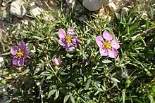 La fagonie de Crête est une petite fleur de couleur pourpre.