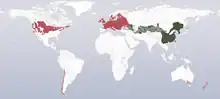 Distribution géographique du faisan de Colchide : noir = origine, rouge = extension.