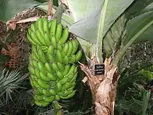 - Nom donné aux fruits de diverses plantes de la famille des musacées (Musaceae), du genre Ensete, en particulier Ensete ventricosum. Ses fruits ne sont pas mangeables, la plante est cultivée pour son stipe (faux tronc) et sa tige souterraine apparentée à un tubercule qui sont consommés.