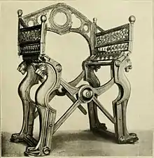 - (Mobilier) Fauteuil inspiré par le trône en bronze du roi de France.