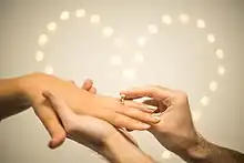 Remise d'une bague de fiançailles.
