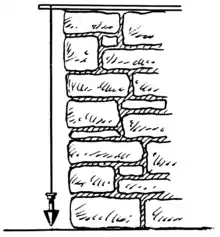 Un fil à plomb le long d'un mur.