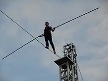 - (Cirque) Discipline d’équilibre des arts du cirque, fil de fer sur lequel évolue un funambule ou un fil-de-fériste.