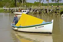 - (Navigation) Bateau à fond plat et aux extrémités relevées en usage sur diverses rivières.
