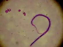 - (Parasites) Genre de vers très fins (des nématodes) qui parasitent le derme et parfois l’œil ou les vaisseaux lymphatiques selon l’espèce. On les nomme aussi onchocerques, de l’appellation binomiale d’une des espèces les plus connues, Onchocerca volvulus. Il en existe bien d’autres comme Mansonella perstans ou Wuchereria bancrofti.