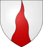 ![]() Arĝenta kun gorĝa flamumita paliso (D’argent au pal flamboyant de gueules) |