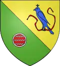 - Tranché : au premier d’or au faucon d’azur allumé d’or et longé de gueules, au deuxième de sinople à une fontaine héraldique d’argent remplie de gueules et traversée de trois sources aussi d’argent, qui est de la commune de Fontaine de l’Isère → voir illustration « armoiries avec une fontaine héraldique classique »