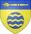 - soit comme un besant d’or rempli d’azur chargé de 2 à 3 fasces ondées d’argent. Sa couleur fondamentale est donc celle utilisée pour la bordure.