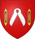 - De gueules aux forces de tondeur ouvertes en chevron d’argent accostées de deux navettes d’or, qui sont de la commune Locronan du Finistère → voir illustration « armoiries avec des forces de tondeurs »