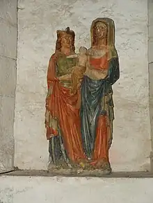Statue polychrome qui représente 3 générations : la grand-mère, la mère et l'enfant encore poupon.Faites venir des chevaux boulonnais dans le Midi de la France ou en Espagne à la seconde génération vous ne les reconnaîtrez plus.
