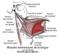 - (Anatomie) Muscle qui s'étend du menton à la base de la langue.