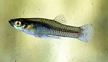 - Espèce de petit poisson osseux d’eau douce ou saumâtre (étangs et marais), originaire d’Amérique, très prolifique, qui détruit les larves des moustiques, de la famille des poeciliidés.