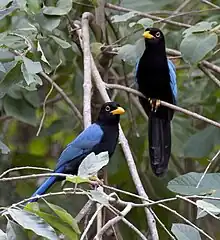 - (Ornithologie) Corvidé bleu et noir au bec jaune, présent au Mexique, au Guatemala et au Belize.