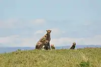 Deux autruches en liberté poursuivent une jument rousse ; un guépard se mêle au divertissement, bientôt rejoint par une bande de chiens, des dindes et deux adorables guépardeaux.