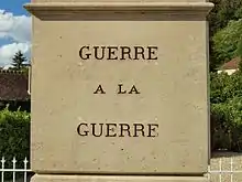 Sur le monument aux morts de Gy-l'Évêque : Guerre à la guerre.