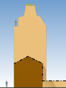 - (Par extension) Surface au-dessus de ladite limite (au-dessus de partie mitoyenne du mur). Elle est réputée appartenir au propriétaire du bâtiment le plus haut.