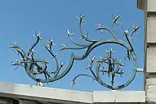 - (Architecture) Ouvrage de défense en fer forgé pourvu de pointes, scellé au faîte d’un mur.