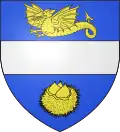 - D’azur à la fasce d’argent accompagnée en chef d’un dragon d’or et en pointe d’une châtaigne hérissonnée du même, qui est de Ferres → voir illustration « châtaigne hérissonnée »