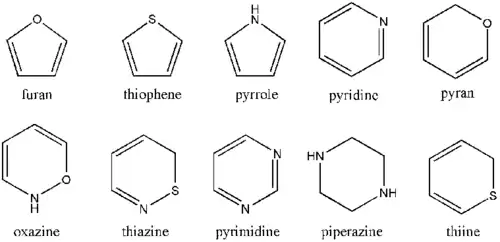 - (Chimie) Composé organique comprenant une chaîne fermée d'atomes, dont au moins un n’est pas un atome de carbone.