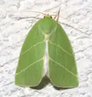 — (Éphrem Aubert, Histoire naturelle des êtres vivants, tome II, fascicule II, André-Guédon, Paris, 1896, page 193)La Halias du chêne (Bena bicolorana) a les ailes antérieures de couleur verte, ornées de deux fines lignes blanches.