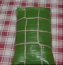 - Mets traditionnel vénézuélien, typique de Noël, constitué d’une crêpe carrée généralement fourrée de viande de bœuf ou de porc, d’olives, de poivrons, de raisins secs et enfermée dans une feuille de bananier dans laquelle elle est cuite dans de l’eau bouillante.