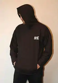 — (« Un hoodie pour les amoureux d’Android », Gizmodo.fr, 15 avril 2012)Une heure environ après le départ de Kateri, l’une de nos jeunes libraires est arrivée, tout de noir vêtue, dans un pantalon palazzo chiffonné et un hoodie du magasin, capuche rejetée en arrière.