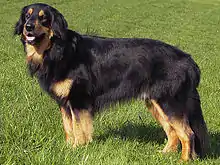 - Race de chien molossoïde type chien de montagne d’origine allemande, au poil long, blond, noir ou noir et feu.
