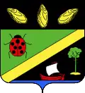 - Taillé, au premier de sinople à la coccinelle de gueules de sept points de sable, la tête et les pattes du même, au second de sable au voilier de gueules habillé d’argent et flammé aussi de gueules voguant à dextre sur une mer d’azur, surmontée à senestre d’un pin maritime de sinople sur une terrasse isolée d’or ; à la cotice en barre d’or brochant sur la partition ; le tout sommé d’un chef de sable chargé de trois huîtres d’or posées en bande, en pal et en barre, qui est de Gujan-Mestras → voir illustration « armoiries avec 3 huîtres »