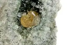 - (Minéralogie) Fluoro-silicate de magnésium et de fer, découvert au Monte Soma proche du Vésuve. Sa formule est (Mg,Fe2+)7(SiO4)3F2.