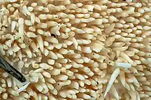 Les aiguillons grossis d’un hydne, le pied-de-mouton.