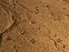 Des empreintes laissées dans les sédiments par des dinosaures.