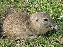 - (Zoologie) Un souslic, synonyme de spermophile d'Europe.