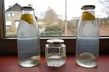 - (Boisson) Boisson issue de la fermentation d'eau sucrée dans laquelle sont mis à tremper des rondelles d'agrumes, divers fruits secs coupés (dattes, figues, ...) ainsi que des ferments spéciaux nommés grains de kéfir.