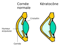 - Maladie dégénérative de l’œil qui se traduit par une perte de la sphéricité de la cornée qui prend alors la forme d’un cône.