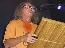 Danyel Waro, artiste réunionnais jouant du kayamb.