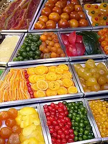 Konfitaĵoj en barcelona bazaro (« Des fruits confits dans un marché barcelonais »).