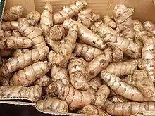 Rizomoj de kurkumo en kartonskatolo. (« Des rizhomes de curcuma dans une boite en carton ») (sens 2)