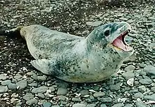 - (Zoologie) Espèce de phoque de l' Antarctique, imposant, très carnassier, et dont le corps est couvert de petites taches sombres.