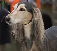 - Race de chien lévrier, originaire du Moyen-Orient, assez grand, aux oreilles et à la queue longues et frangées, à poil court et lisse.