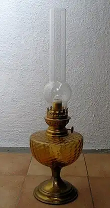 - Luminaire constitué d'un réservoir contenant du pétrole lampant qui monte vers le bec grâce à une mèche.