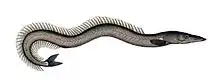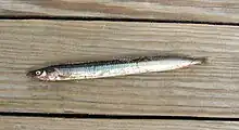 - (Zoologie) Espèce de petit poisson osseux marin, un lançon de la Baltique, la mer du Nord, l’Atlantique et la Méditerranée, qui n’a pas de tâche noire devant l’œil et dont la membrane buccale supérieure est très protractile.