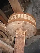 — (Alfred de Vigny, Cinq-Mars, 1826)Ces entraits, en se croisant à mi-bois entre chaque pièce, moisent aussi le poinçon qui monte dans la lanterne et s'élève jusque dans la flèche pyramidale qui la surmonte; […].