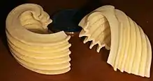 - (Cuisine) Type de pâtes en morceaux striés et incurvés.