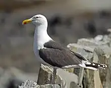 Le goéland marin (Larus marinus) est peut-être celui des laridés qui se rapproche le plus du λάρος des Grecs anciens, mot qui a donné le nom au genre et à la famille auxquels appartient ce cleptoparasite opportuniste notoire.