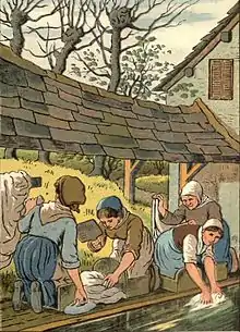 - Normand : lavous (*) ; dou à laver (*) ; lav’thie (*) ; lav’rie (*) ; lavdjii (*), dou (*), douet (*), douit (*)