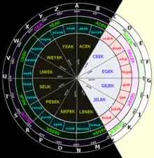 - Zone radiale entre L et C (roue matricielle), la zone qui s’étend de L à C dans le sens dextrorsum, c’est-à-dire la majeure partie du disque.