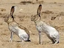 Deux lièvres à flancs blancs.