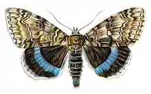 - (Entomologie) Une espèce d' insecte lépidoptère (papillon) de nuit de la famille des noctuidés (Noctuidae), d'Eurasie, dont le dos des ailes antérieures est de couleur gris-brun avec des lignes en zigzag, et avec une bande bleue sur les ailes postérieures.