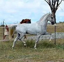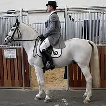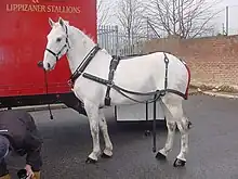 - Race de cheval de parade, dont la taille moyenne au garrot avoisine 1 mètre 60, à robe baie ou noire à la naissance qui s'éclaircit progressivement pour devenir d'un gris très clair, originaire de Slovénie et culturellement liée à l'École espagnole de Vienne en Autriche : dressage et haute école, attelage.