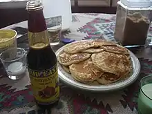 — (Edmond Nivoit, Notions élémentaires sur l’industrie dans le département des Ardennes, E. Jolly, Charleville, 1869, page 127)Il y avait bien peu de mets où l'on n’ajoutât pas de mélasse, les bouillies de farine de maïs et de lait appelées soupanes, les crêpes de blé, les fèves au lard et même les viandes se couvraient de mélasse ; les tartines se trempent de mélasse.